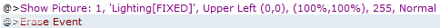 Create a new event in the upper left corner (preference) of the map and in it call up the picture ‘Lighting[FIXED]’